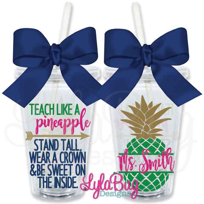 Arrow/crown: KellyTeach/pineapple: golden yellowPineapple/name: navyWriting: hot pinkRibbon color: preppy stripe