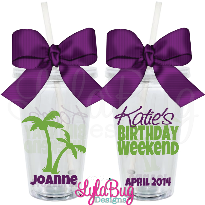 BPA Free Acrylic Tumblers are double wall insulated, come with a screw on lid with rubber gasket and a matching straw that has a guard so it can't be pulled out {comes in handy with little ones} Tumblers can be used for cold drinks and hot drinks up to 160º, fit any standard cup holder, but be sure to wrap with a paper towel if the cup holders are tight as to not damage the vinyl. Designs are applied on the tumblers using only premium commercial quality permanent adhesive outdoor graphic vinyl...the same stuff used on commercial vehicles, boats and outdoor store signage. The tumblers are acrylic and may crack if washed in the dishwasher, hand washing is recommended. These tumblers are not unbreakable, please use care in handling. The bows on the straws are removable.