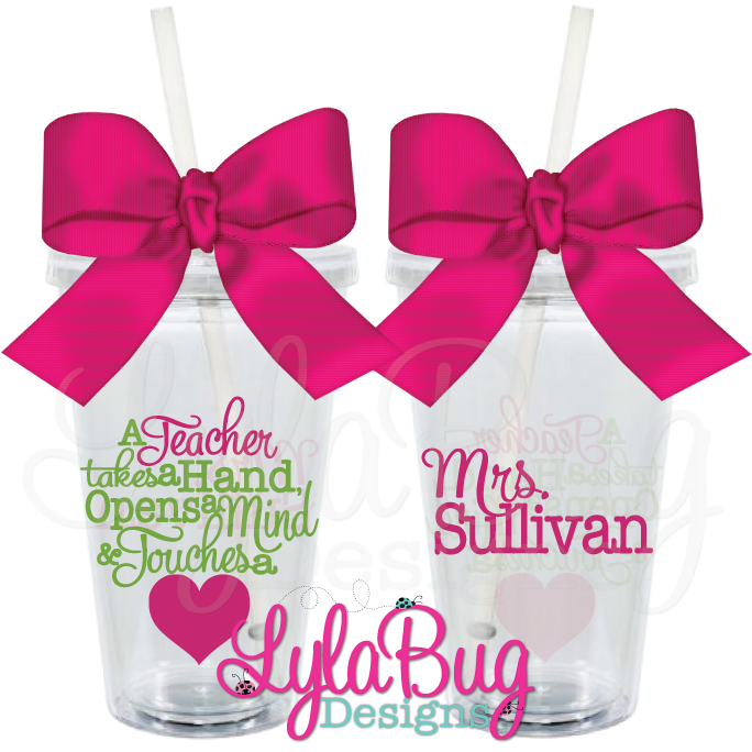 BPA Free Acrylic Tumblers are double wall insulated, come with a screw on lid with rubber gasket and a matching straw that has a guard so it can't be pulled out {comes in handy with little ones} Tumblers can be used for cold drinks and hot drinks up to 160º, fit any standard cup holder, but be sure to wrap with a paper towel if the cup holders are tight as to not damage the vinyl. Designs are applied on the tumblers using only premium commercial quality permanent adhesive outdoor graphic vinyl...the same stuff used on commercial vehicles, boats and outdoor store signage. The tumblers are acrylic and may crack if washed in the dishwasher, hand washing is recommended. These tumblers are not unbreakable, please use care in handling. The bows on the straws are removable.